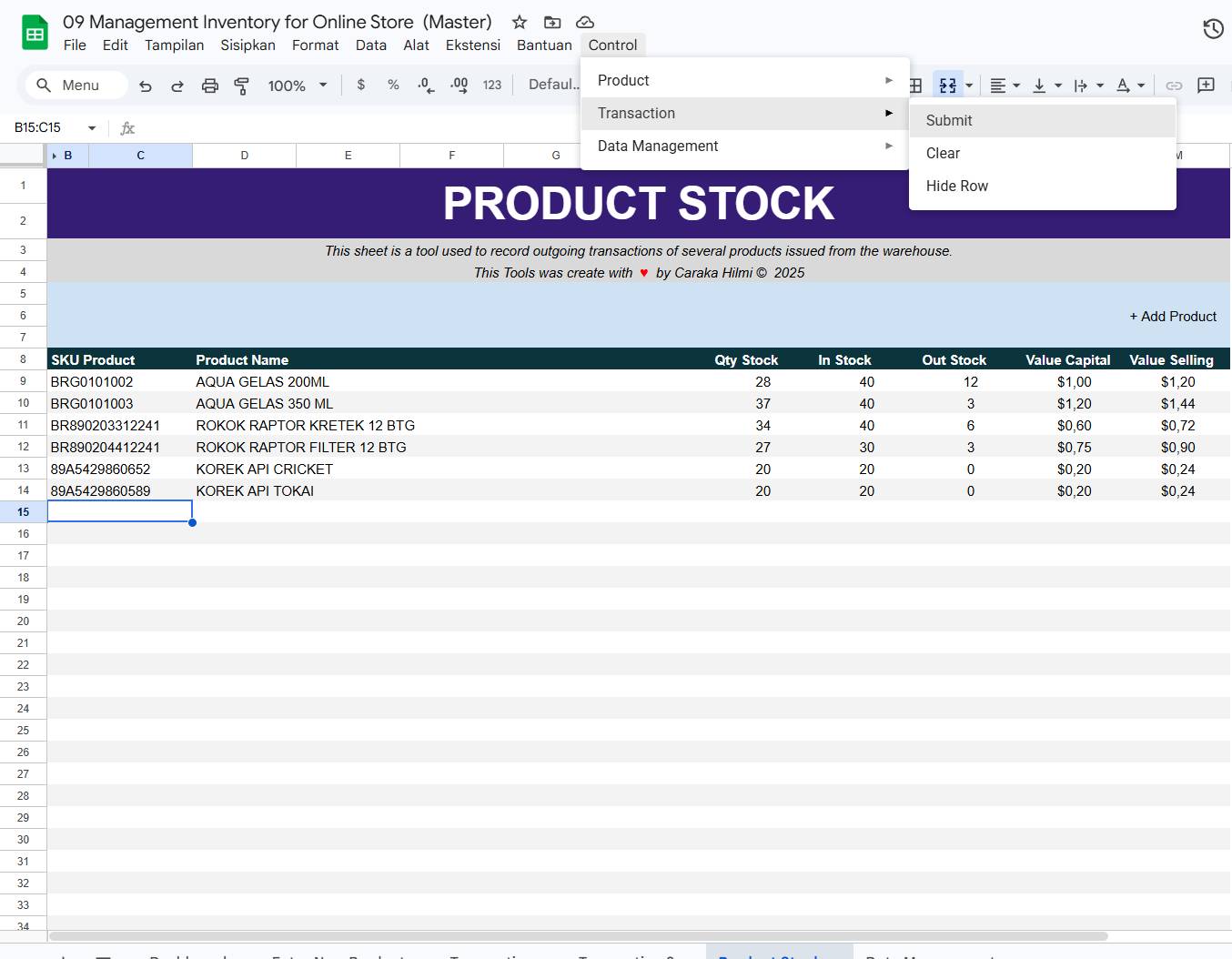 CARO Management Inventory is a portfolio template that create fully by Google Sheet and Appscript suitable for small business, warehouse and related businesses.